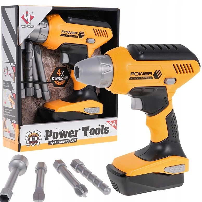 این اسباببازی (اسباب بازی دریل باتری خور) شامل یک دریل باتریخور کودکانه با طراحی ارگونومیک است که بهراحتی در دست کودک قرار میگیرد. با فشردن دکمه روشن/خاموش، سری دریل شروع به چرخش میکند و کودک میتواند حس کار با یک ابزار واقعی را تجربه کند.